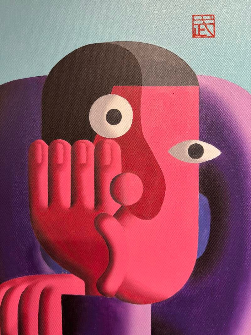Through exaggerated and distorted visual language, Wu Qiang brings to life a cast of figures, each expressing emotions that seem absurd yet eerily familiar. Some quietly chew on their own feelings, some maintain composure on the edge of collapse, while others hide behind a twisted, artificial smile. These figures are not merely fictional—they are dramatized reflections of our real-world personas.